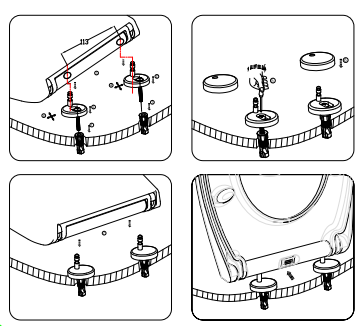 ② S30D, Bodenbefestigung, Edelstahlscharnier mit Schnellverschlussmutter.